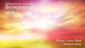 Приглашаю вас в мир света и тепла, в мир любви и гармонии, в мир радости и осознанности. Этот мир не настолько далек, как может это показаться, этот мир находится внутри вас самих. Это ваш внутренний мир - его высшее тонкое проявление, это то состояние, в котором вы хотели бы всегда пребывать, и в котором ощущаете себя счастливыми. Это мир вашего внутреннего духа.